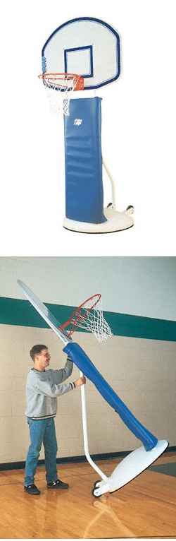 This complete basketball standard rolls in and out of the
